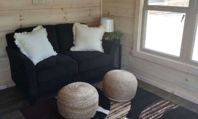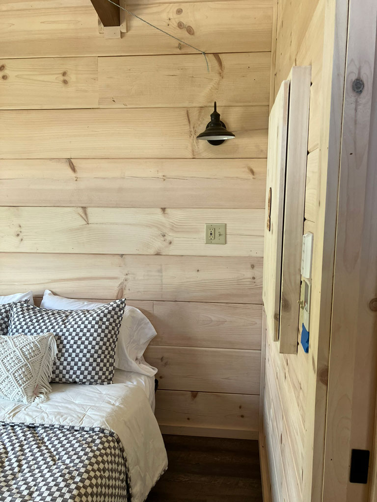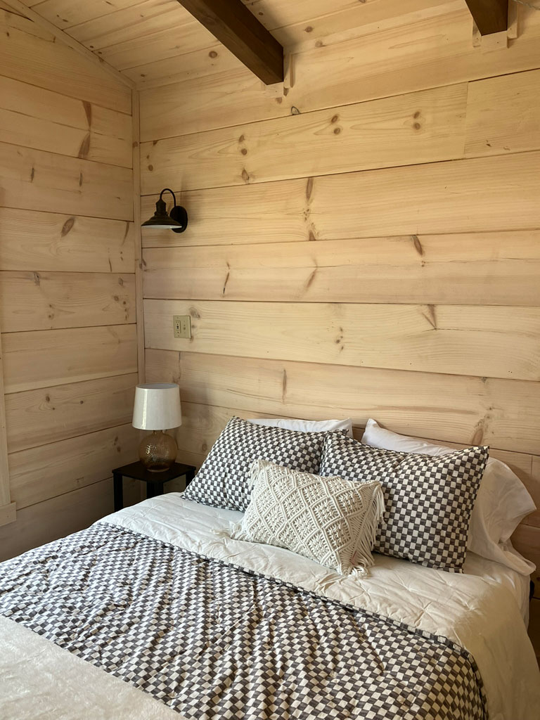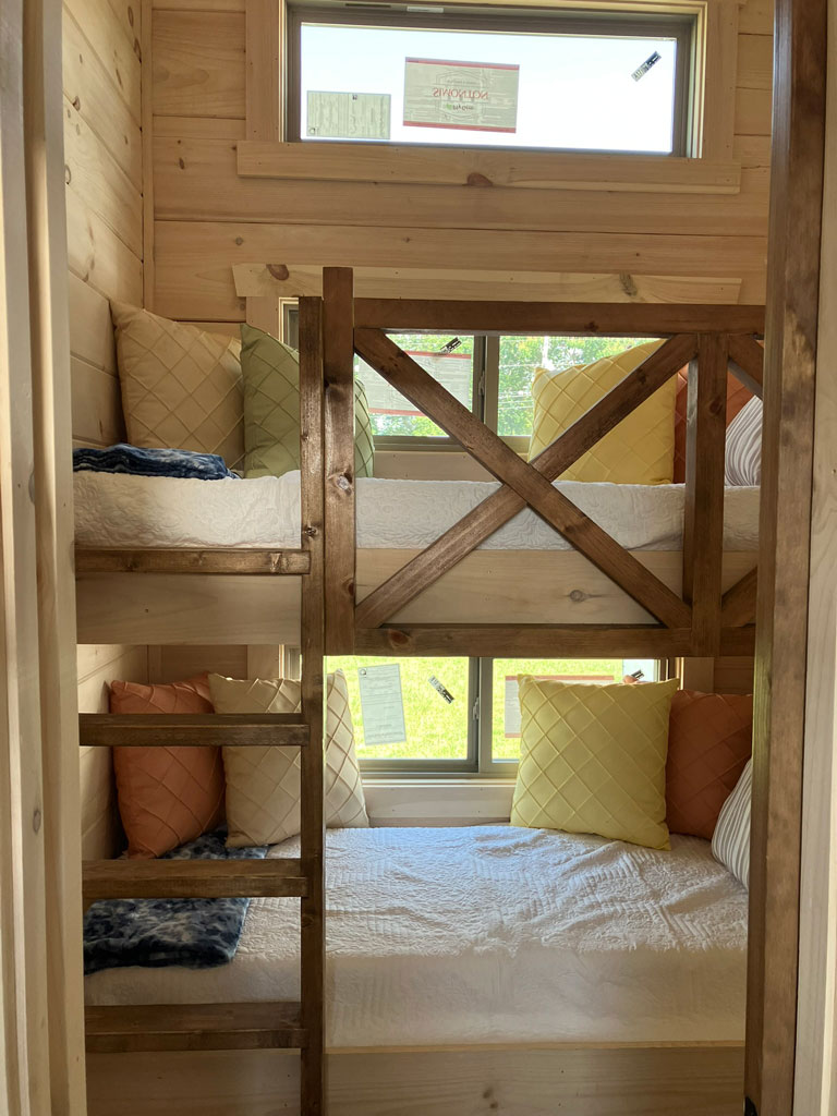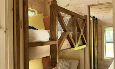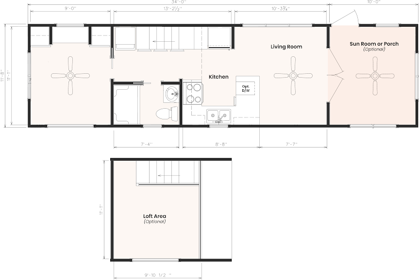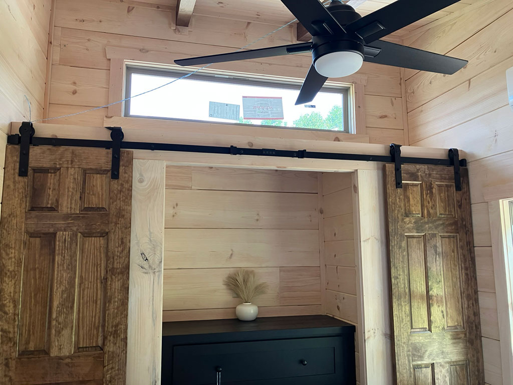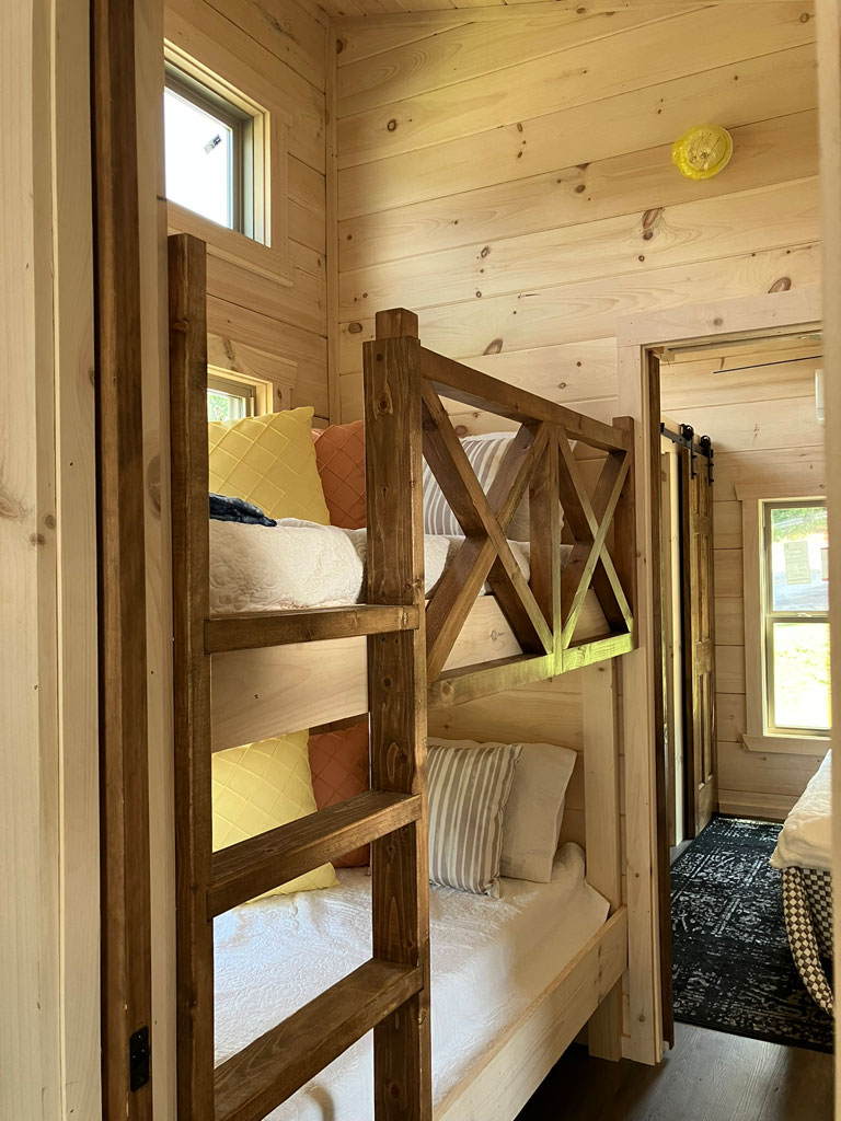 The Blackberry tiny home has natural wood features, making room for plenty of color choices throughout the living room, kitchen, bath, and bedroom. This is a customizable floorplan and you can easily add an optional loft and sunroom porch.