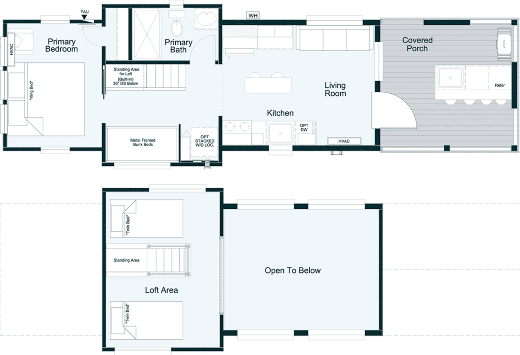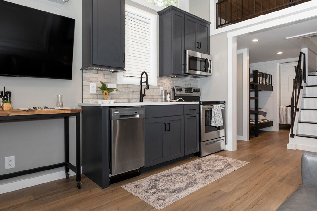 The Tannehill by Clayton is all about bringing outdoor adventure in and the indoor amenities out. The windows in the bedroom bring in plenty of natural light and outdoor scenery while the porch features an outdoor kitchen with a sink, bar, and plenty of countertop space.