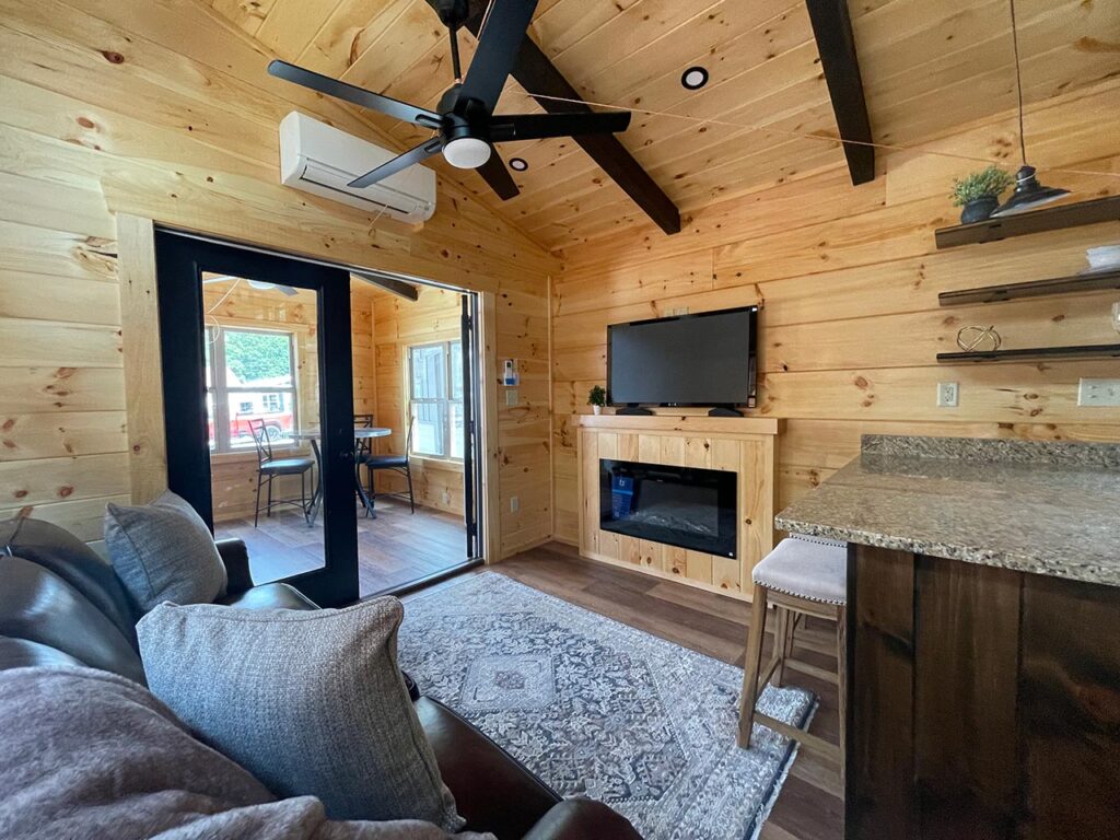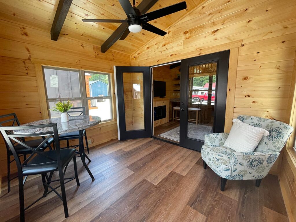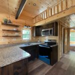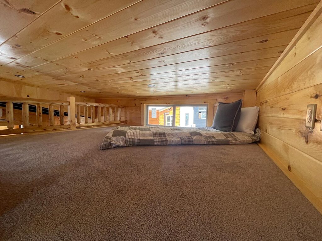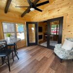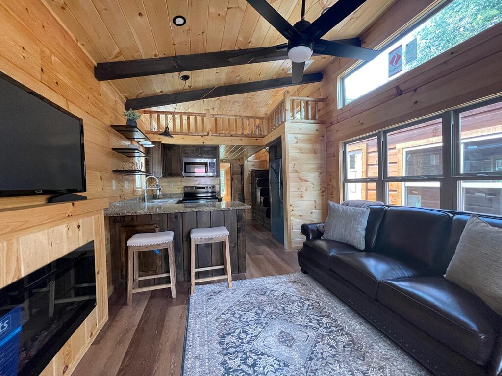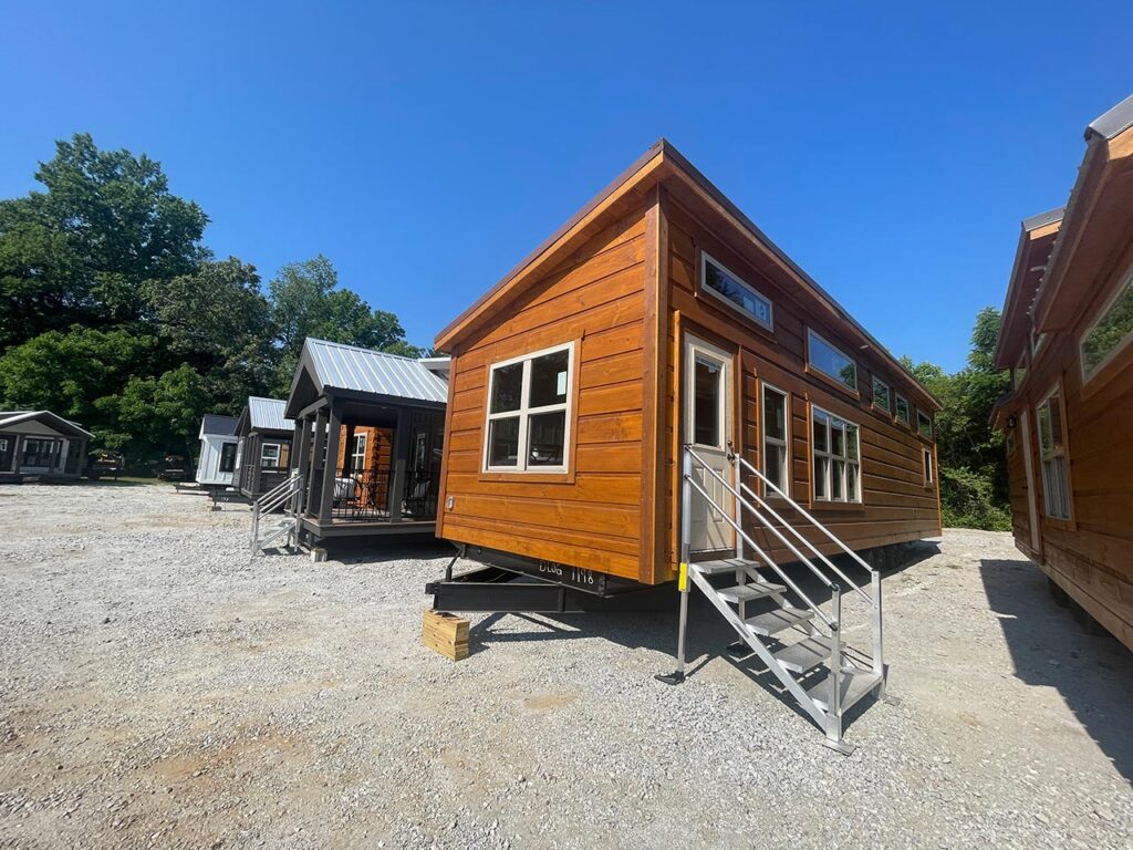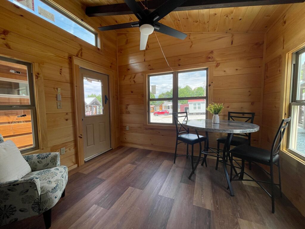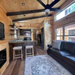 This Blackberry model tiny home is a 398 square feet, 12′ x 44′, 1 bedroom, 1 bath RV park model with a loft that comfortably sleeps 6 people.