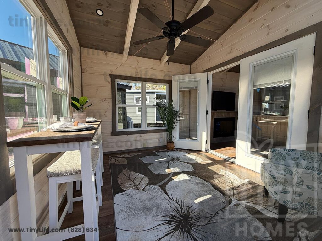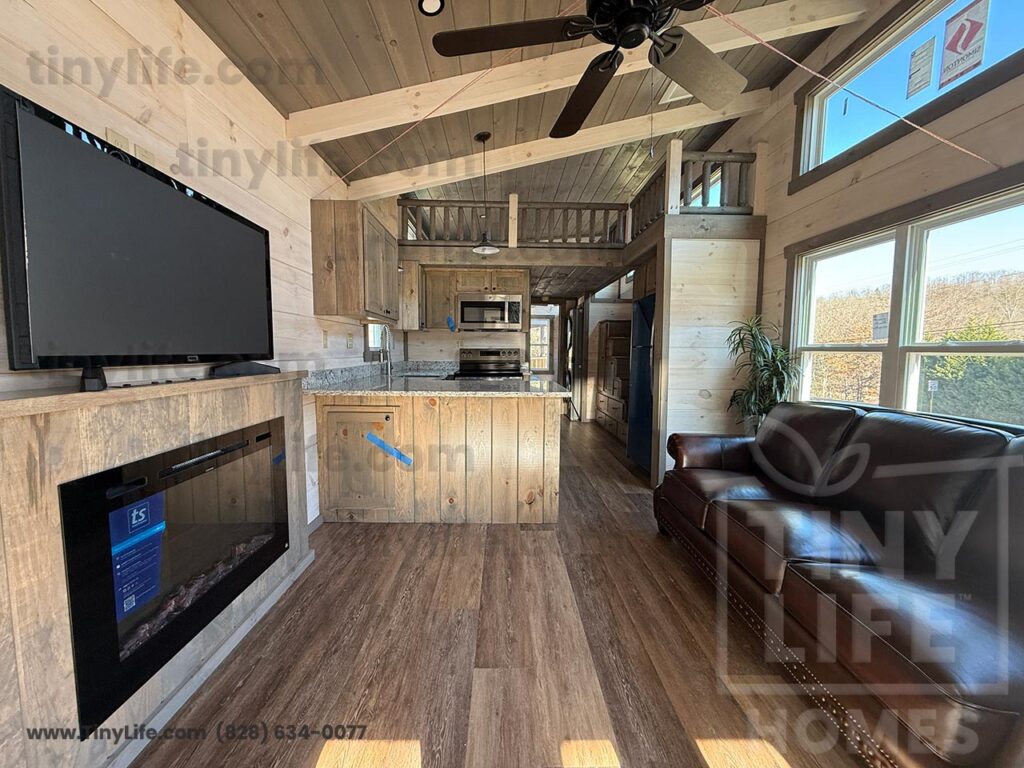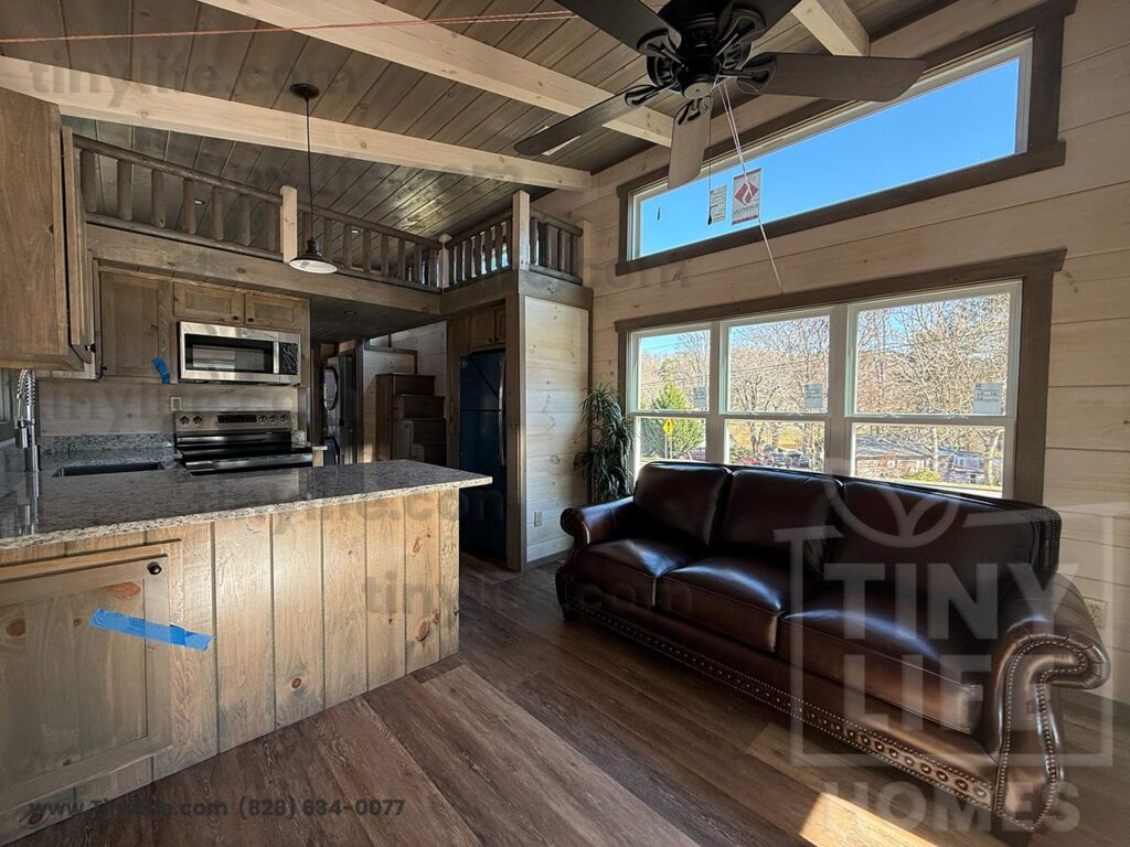 This Blackberry model tiny home is a 398 square feet, 12′ x 44′, 1 bedroom, 1 bath park model rv with a loft available to purchase now!