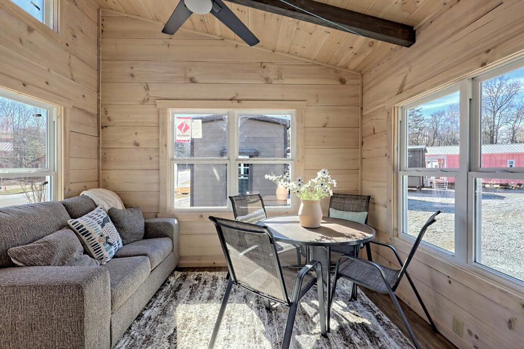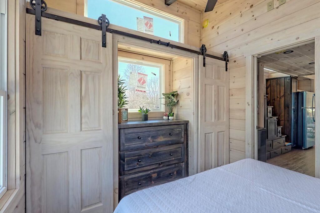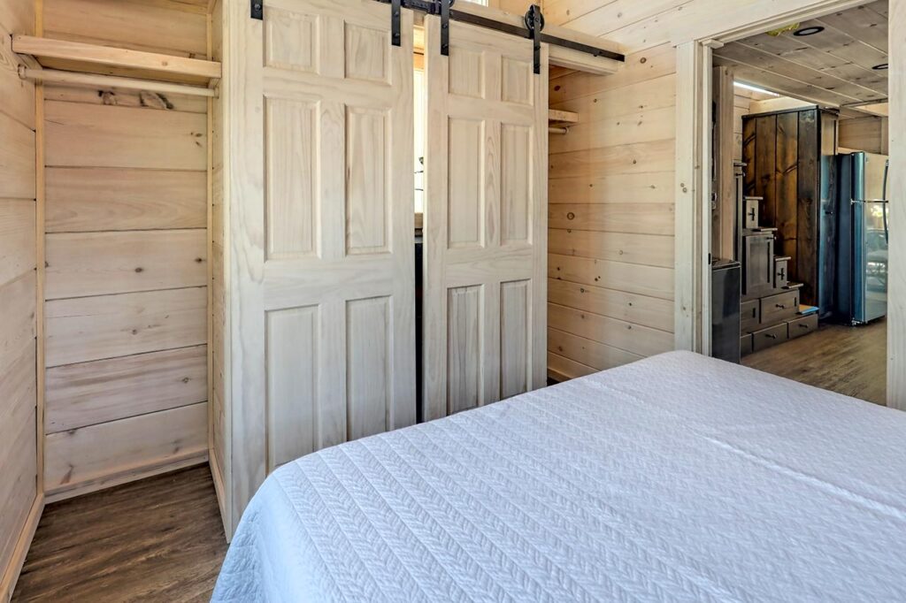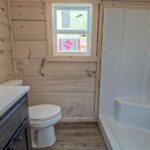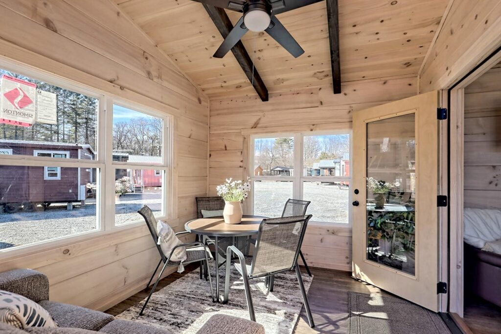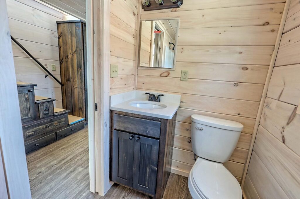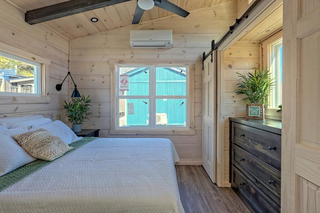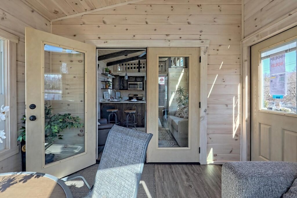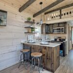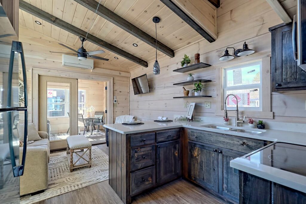 This Blackberry model tiny home is a 396 square feet, 12′ x 44′, 1 bedroom, 1 bath RV park model with a loft that comfortably sleeps 6 people.