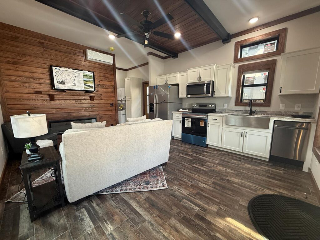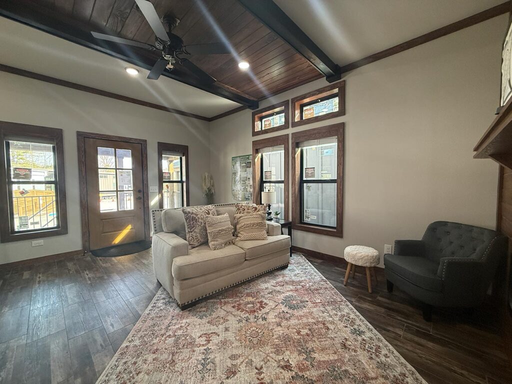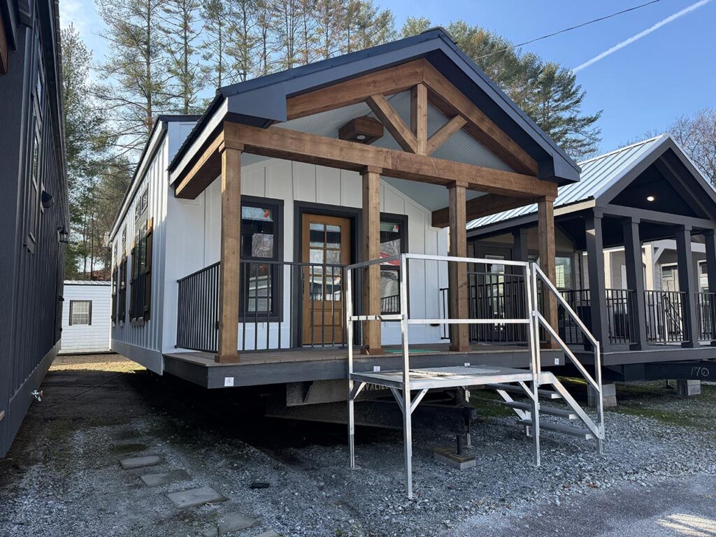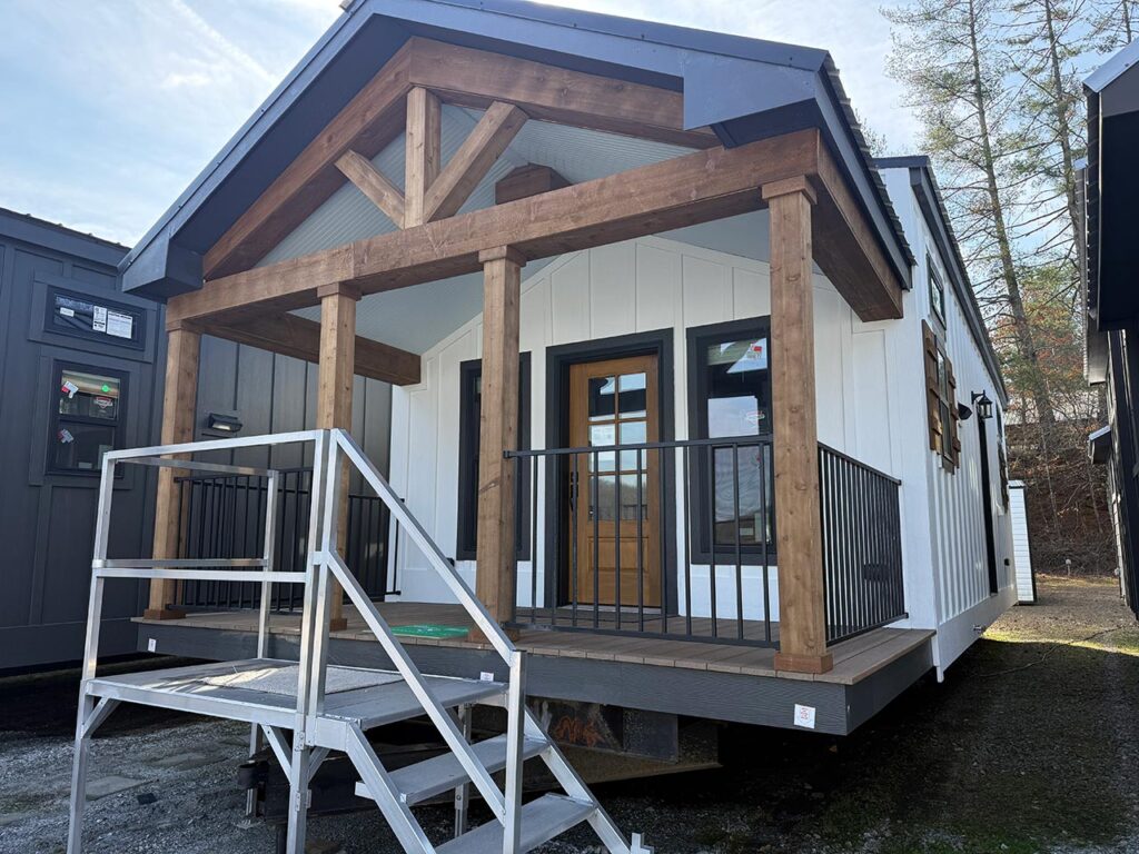 This Cozy Cabin 1 model tiny home is a 480 square feet, 15′ x 39′, 1 bedroom, 1 bath manufactured tiny home available to purchase now!