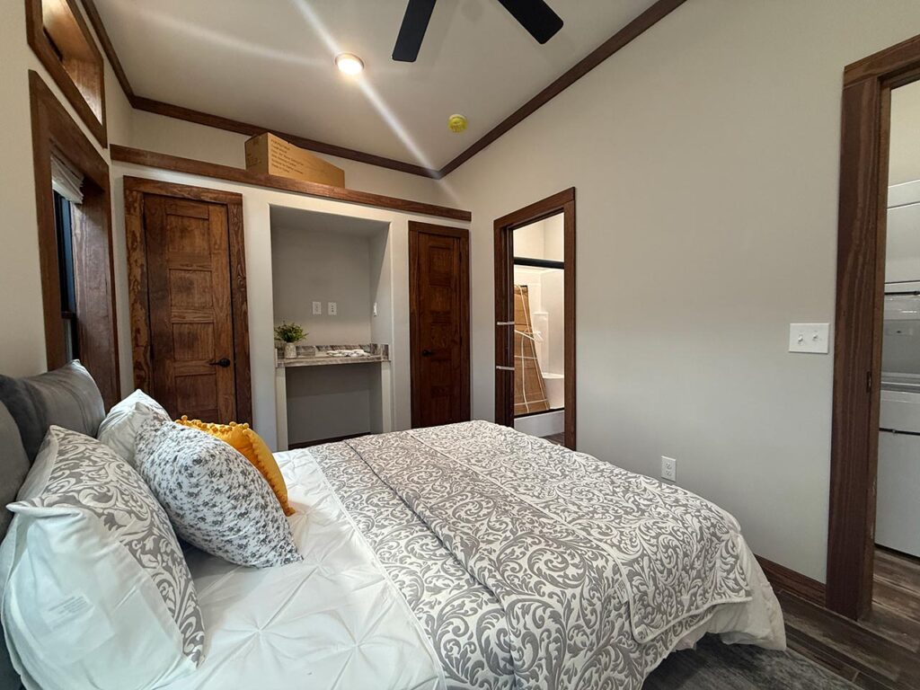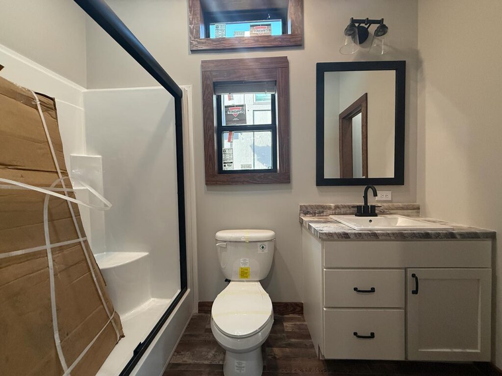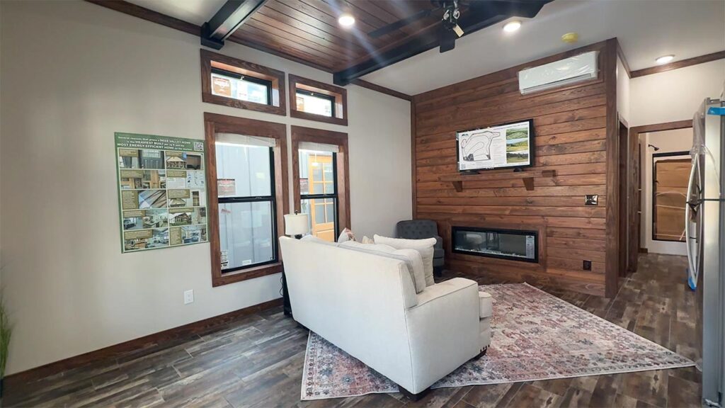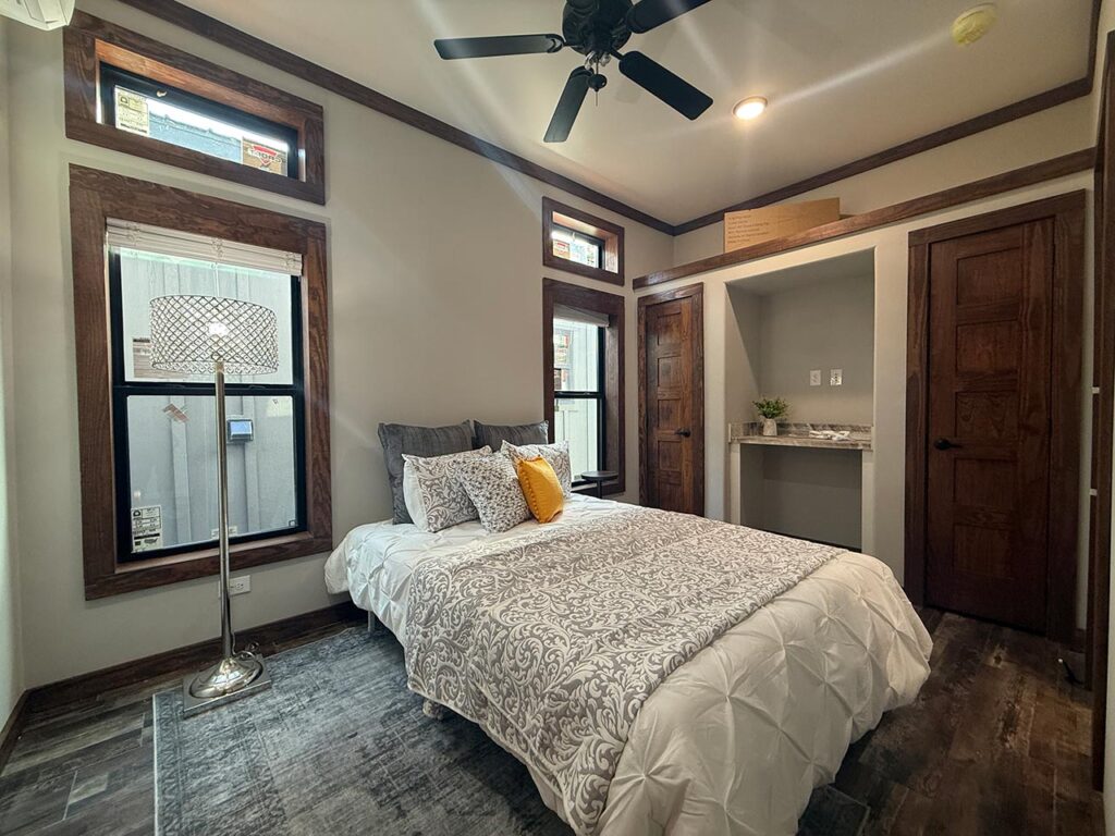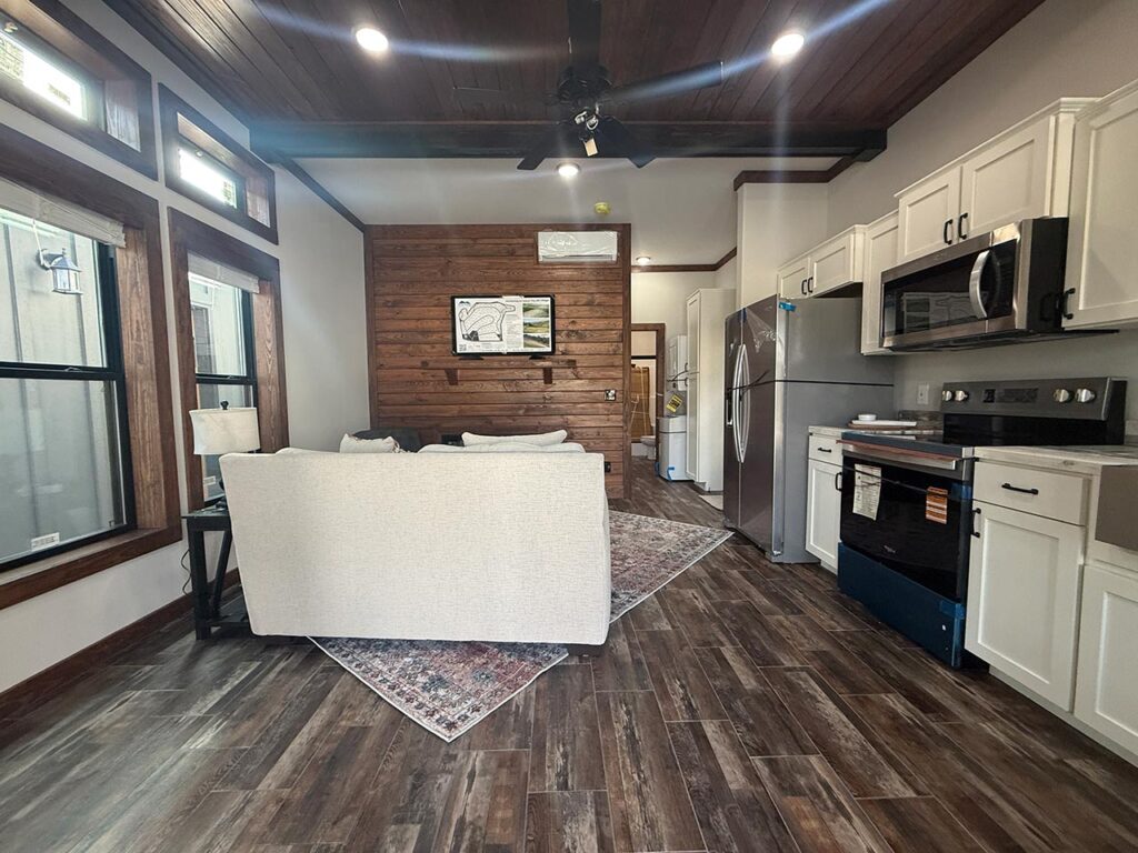 This Cozy Cabin 1 model tiny home is a 480 square feet, 15′ x 39′, 1 bedroom, 1 bath manufactured tiny home available to purchase now!