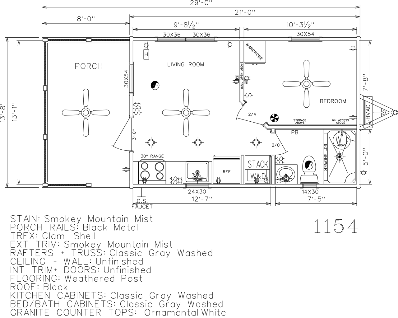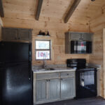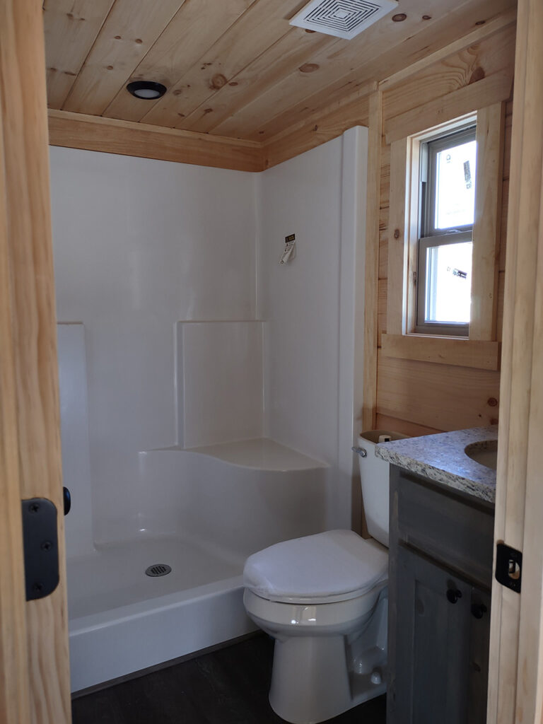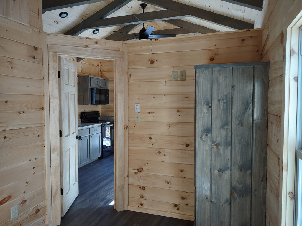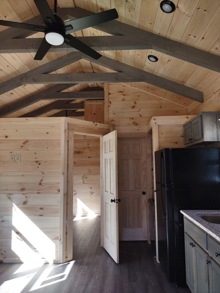 This Pioneer model tiny home is a 276 square feet, 14′ x 26′, 1 bedroom, 1 bath RV park model that comfortably sleeps 4 people.