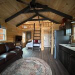 This Pioneer III model tiny home is a 276 square feet, 13.8′ x 29′, 1 bedroom, 1 bath RV park model with a loft that comfortably sleeps 4 people.