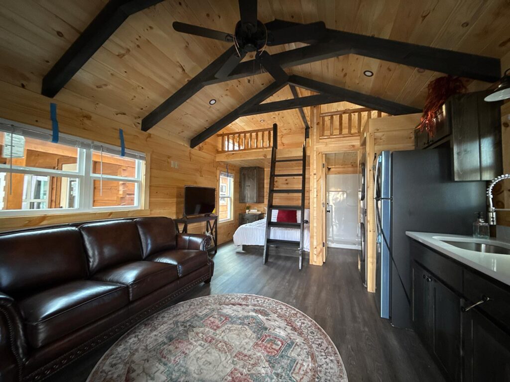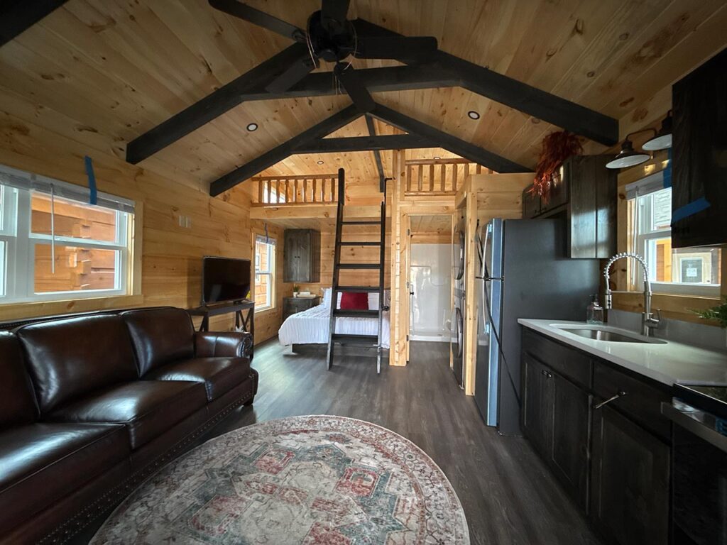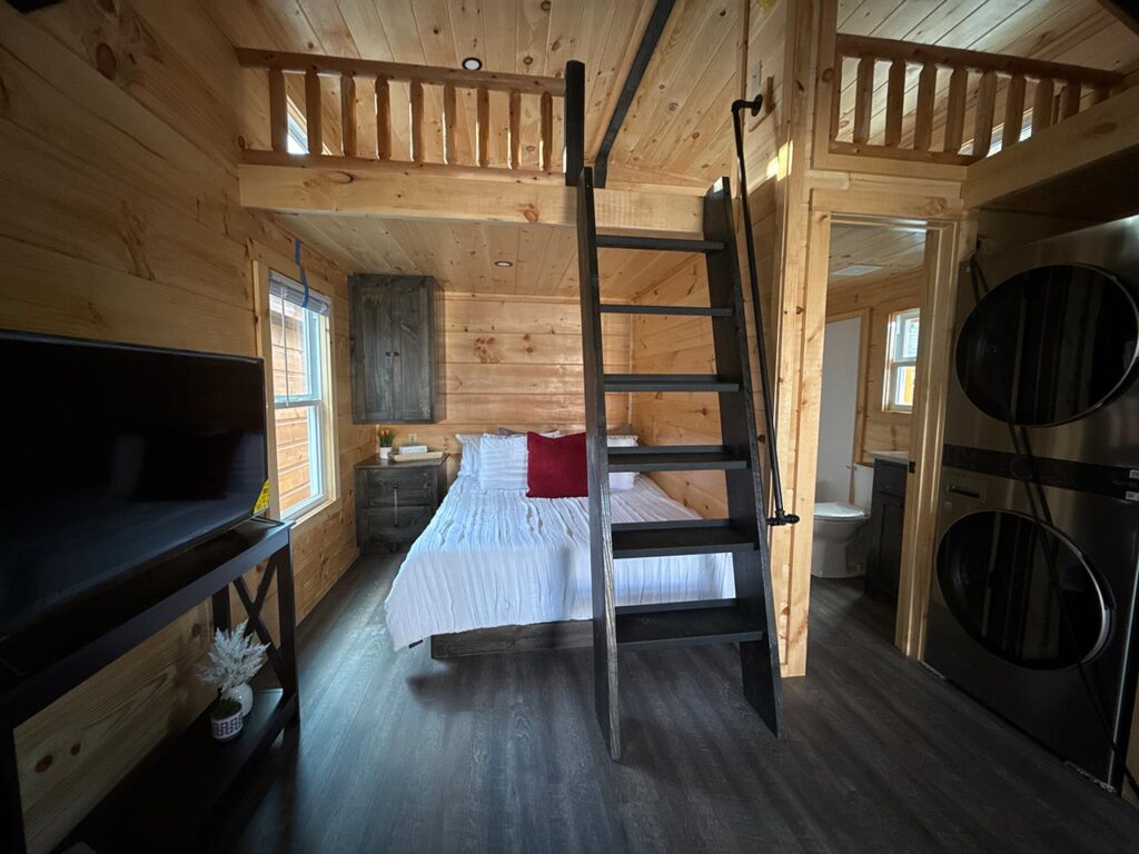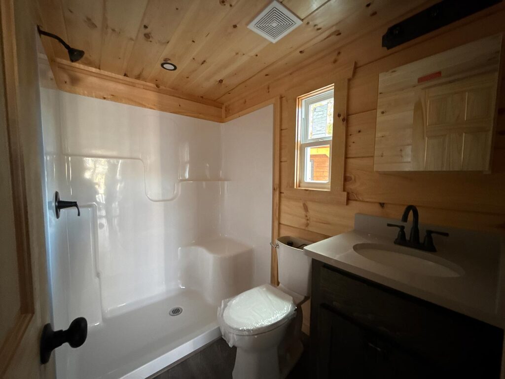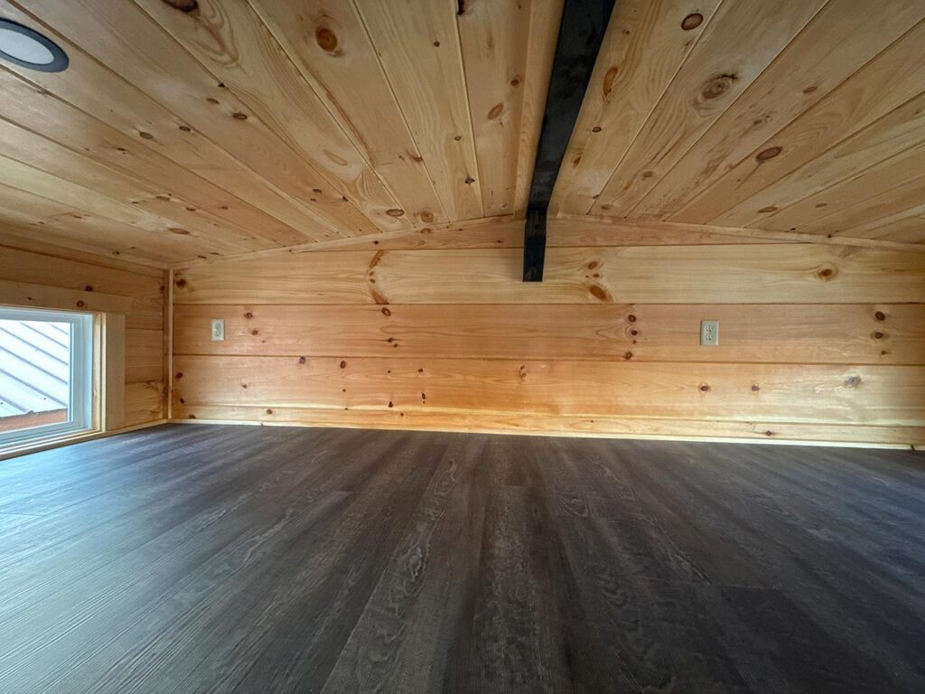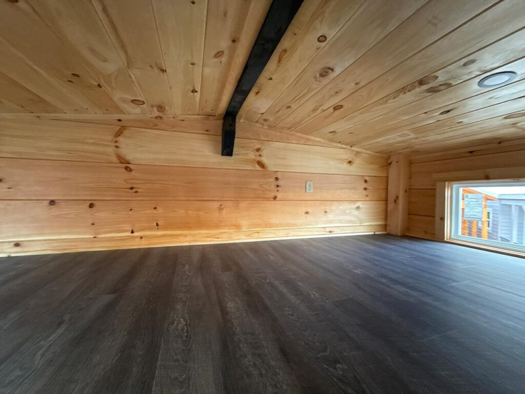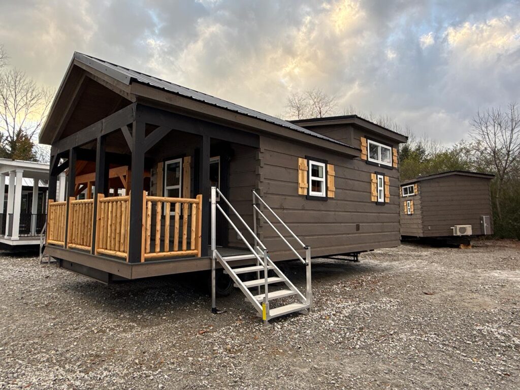 This Pioneer III model tiny home is a 276 square feet, 13.8′ x 29′, 1 bedroom, 1 bath RV park model with a loft that comfortably sleeps 4 people.