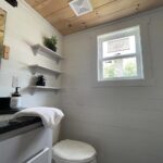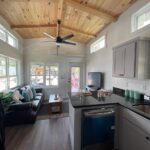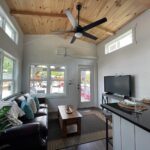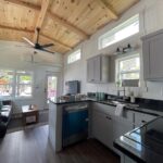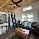 This Smoky model tiny home is a 397 square feet, 12′ x 44′, 1 bedroom, 1 bath RV park model with a loft that comfortably sleeps 6 people.