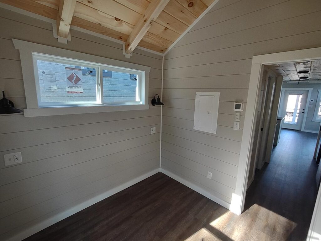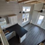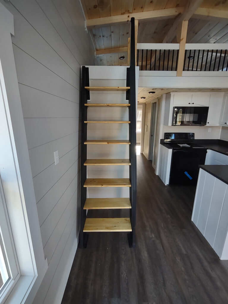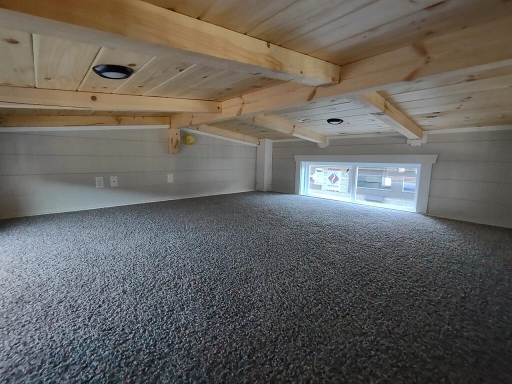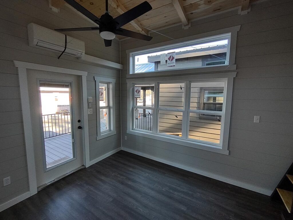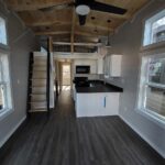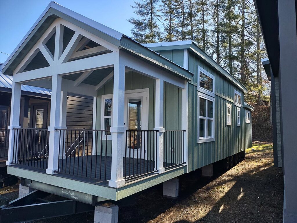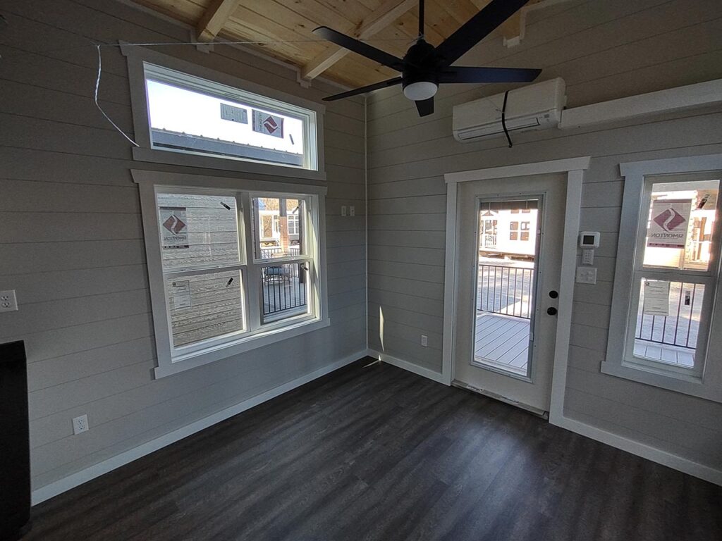 This Smoky model tiny home is a 397 square feet, 12′ x 44′, 1 bedroom, 1 bath RV park model with a loft that comfortably sleeps 6 people.