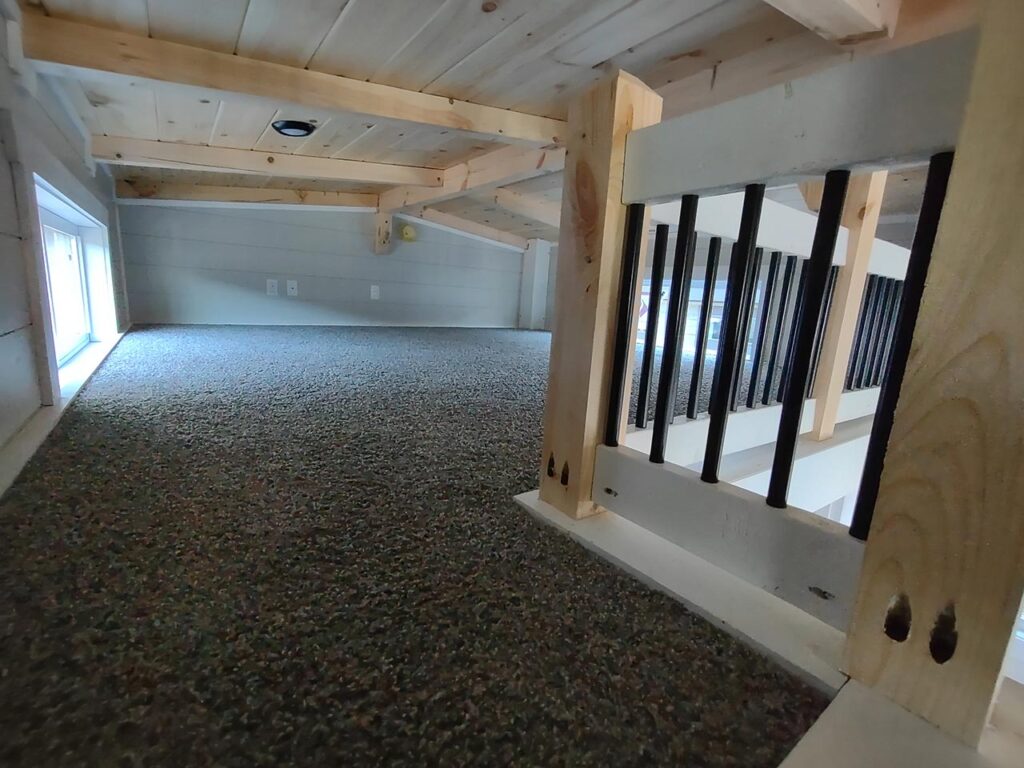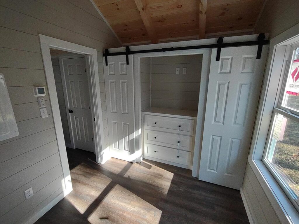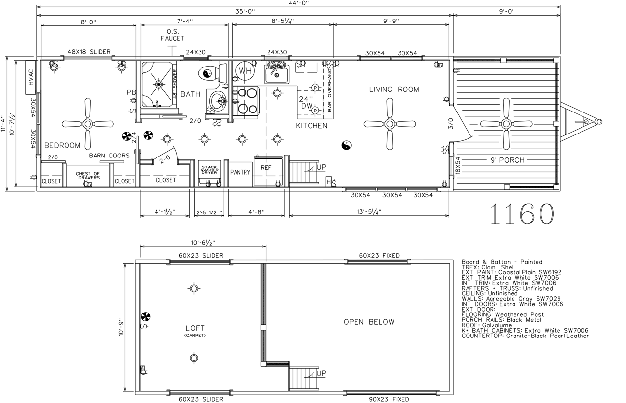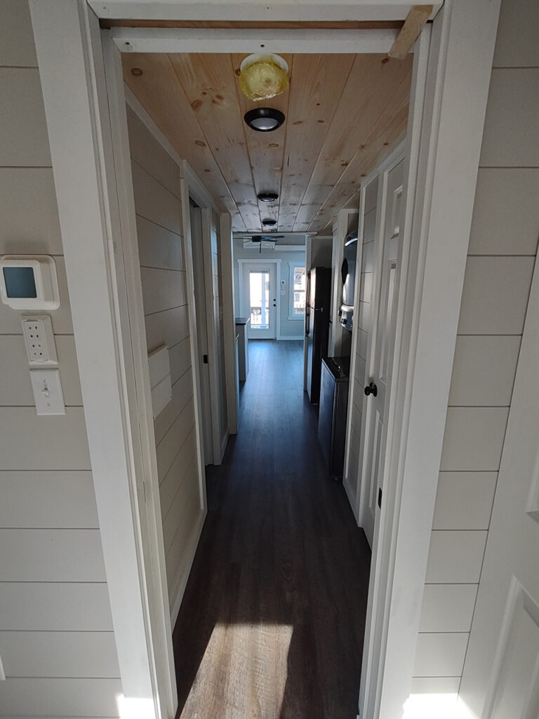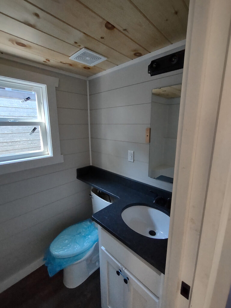 This Smoky model tiny home is a 397 square feet, 12′ x 44′, 1 bedroom, 1 bath RV park model with a loft that comfortably sleeps 6 people.