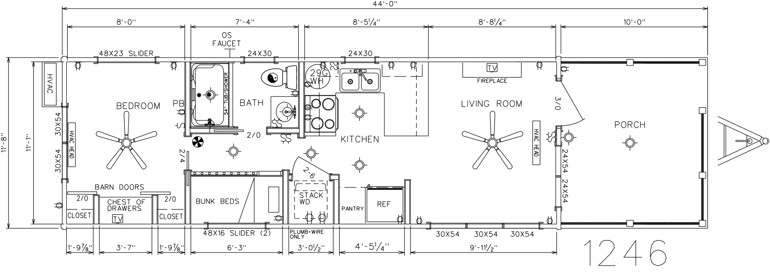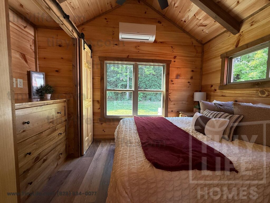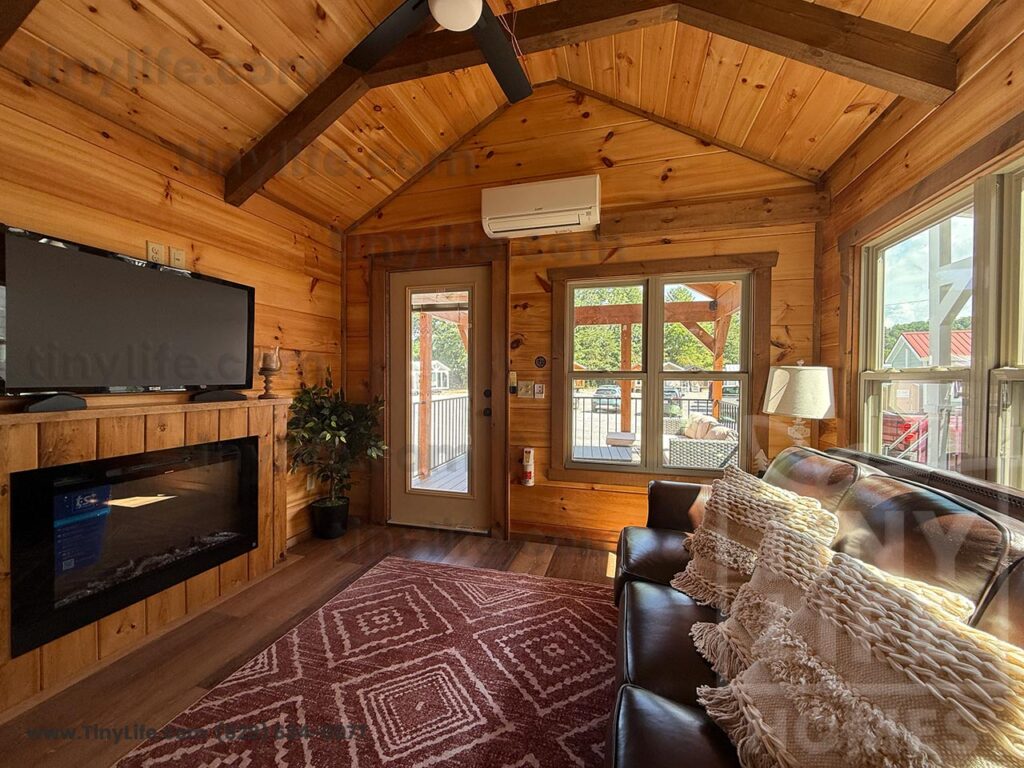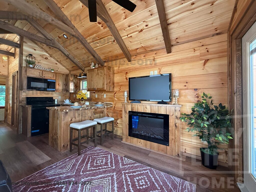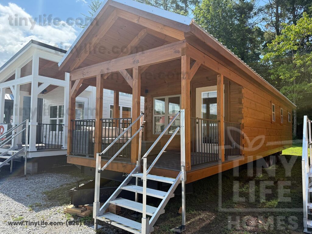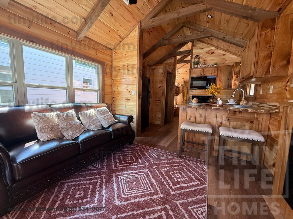 This Smoky model tiny home is a 397 square feet, 12′ x 44′, 1 bedroom, 1 bath RV park model that comfortably sleeps 4 people.